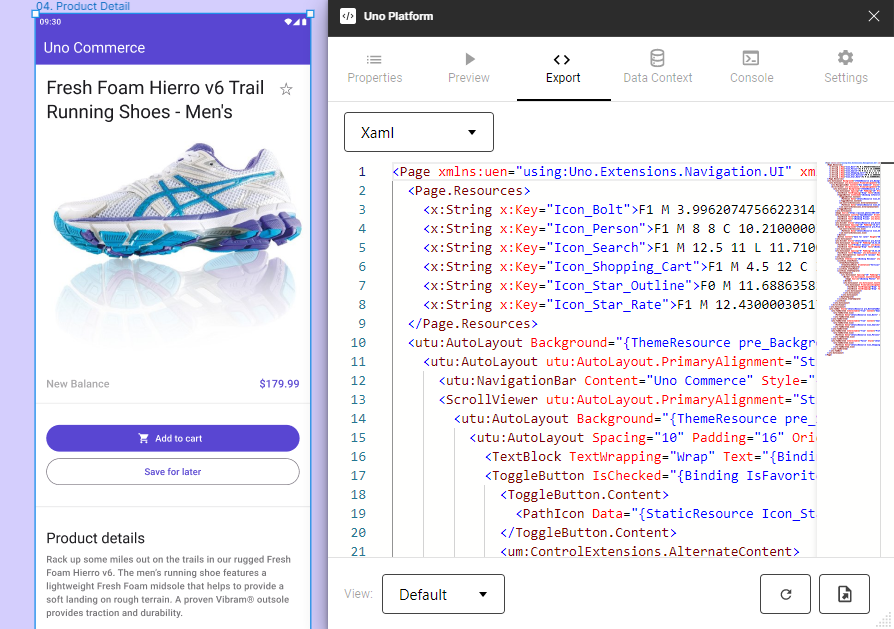 The plugin allows the choice between Xaml and C# Markup formats for the exported code.